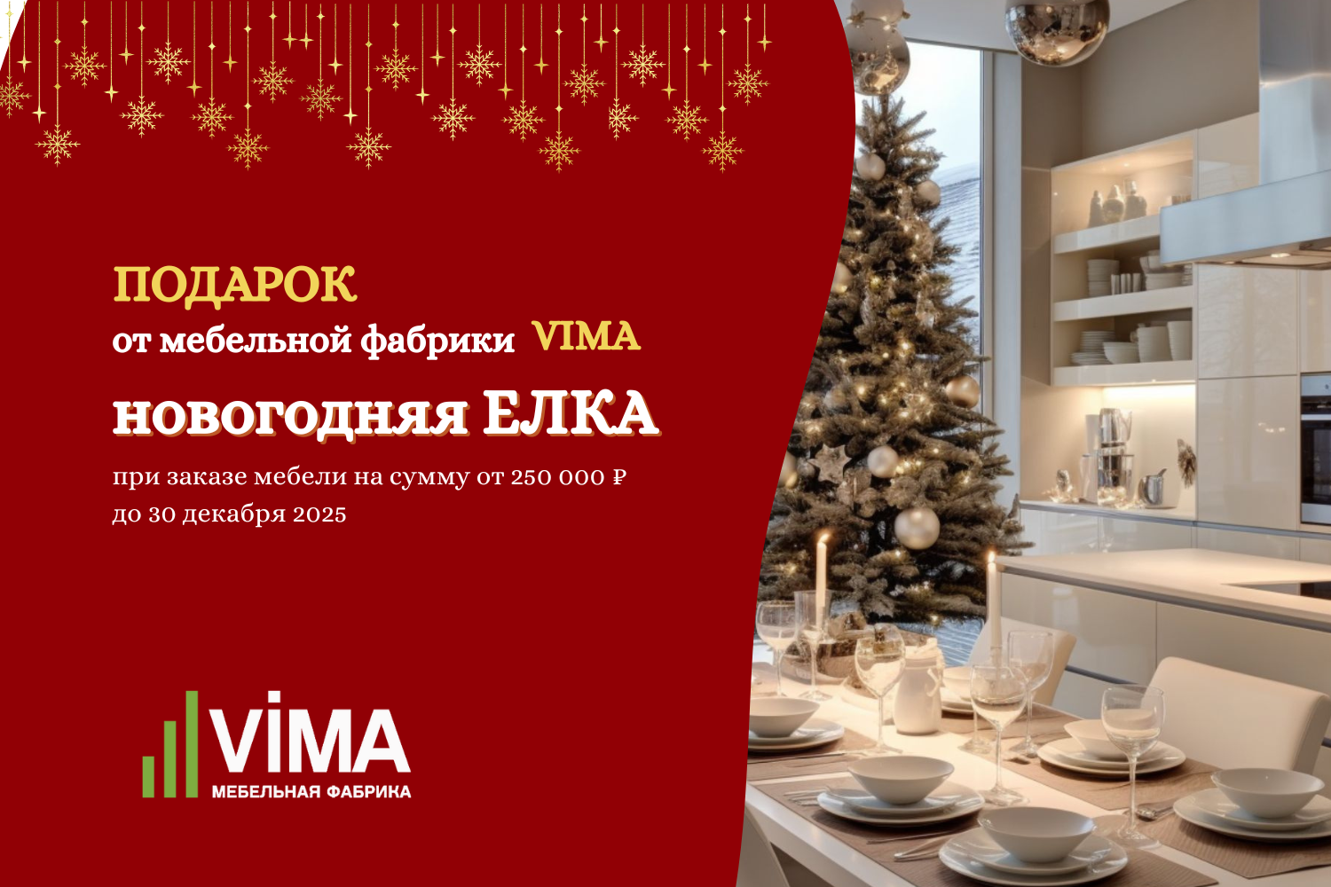 Ёлка в подарок от мебельной фабрики VIMA при заказе кухни или корпусной мебели на сумму от 250 000₽ до 30.12.
