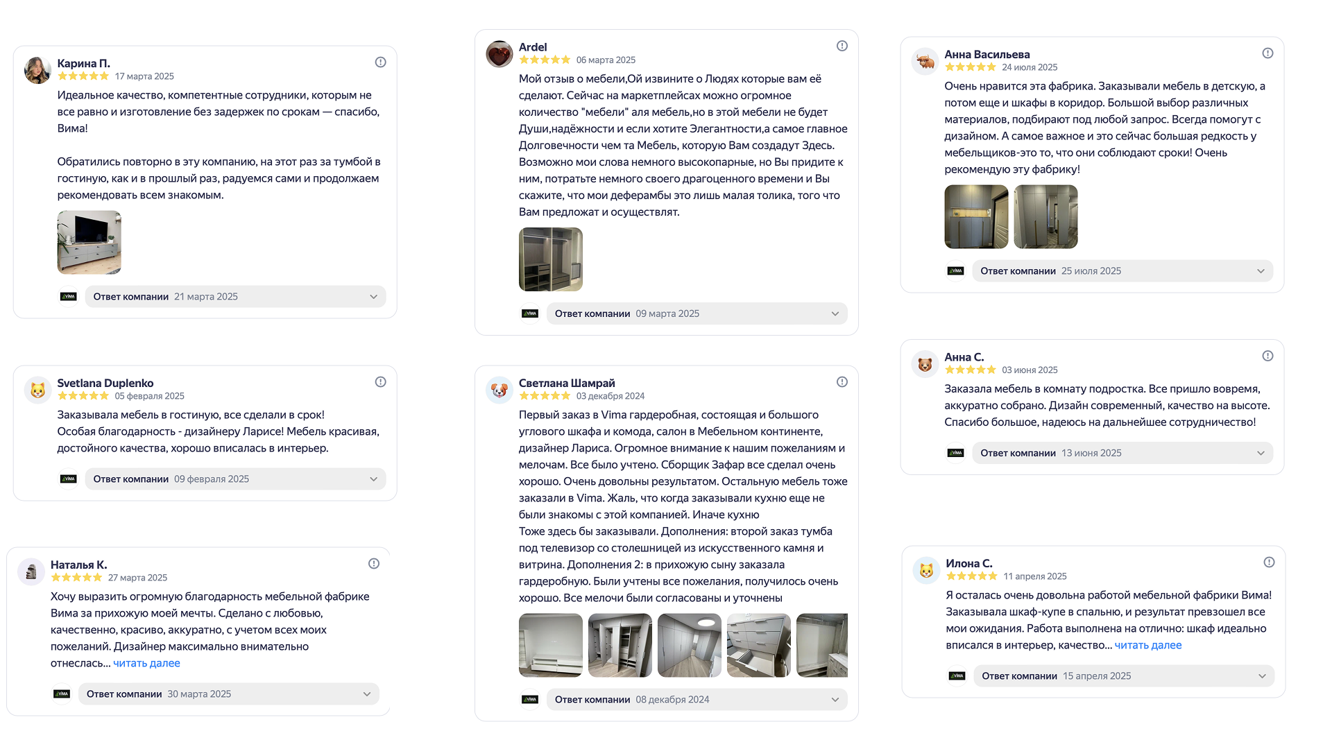 Спасибо, что выбираете VIMA — ваш партнёр в мире индивидуального дизайна и качественной мебели. Мы готовы превратить ваши идеи в предметы, которые будут радовать вас долгие годы.